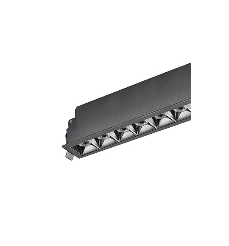 Recessed architectural led, gives depth to volumes. Low glare UGR<19, black with chrome reflector.