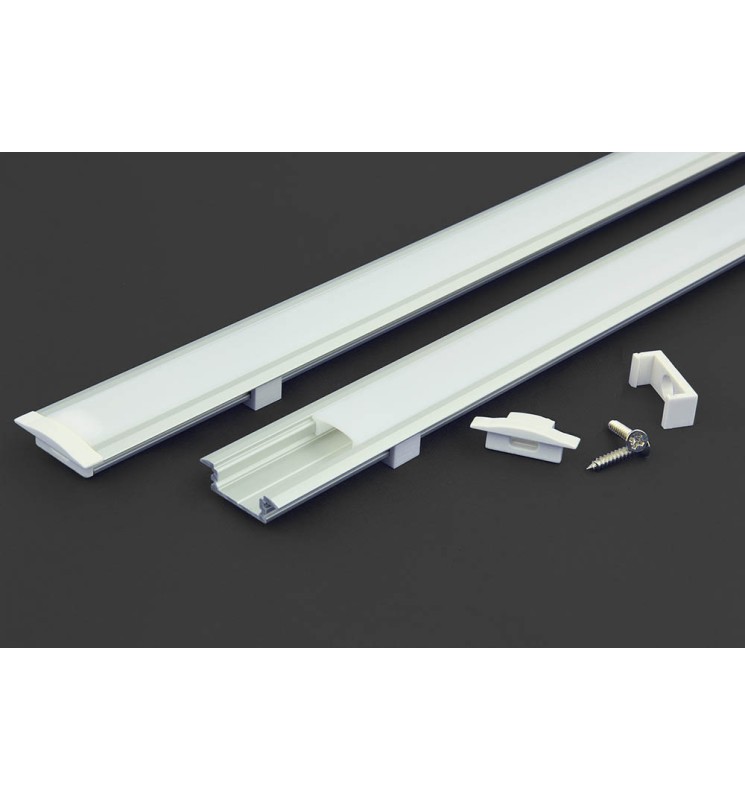 Aluminum profile with opal diffuser in 2m. End caps and mounting clips included.